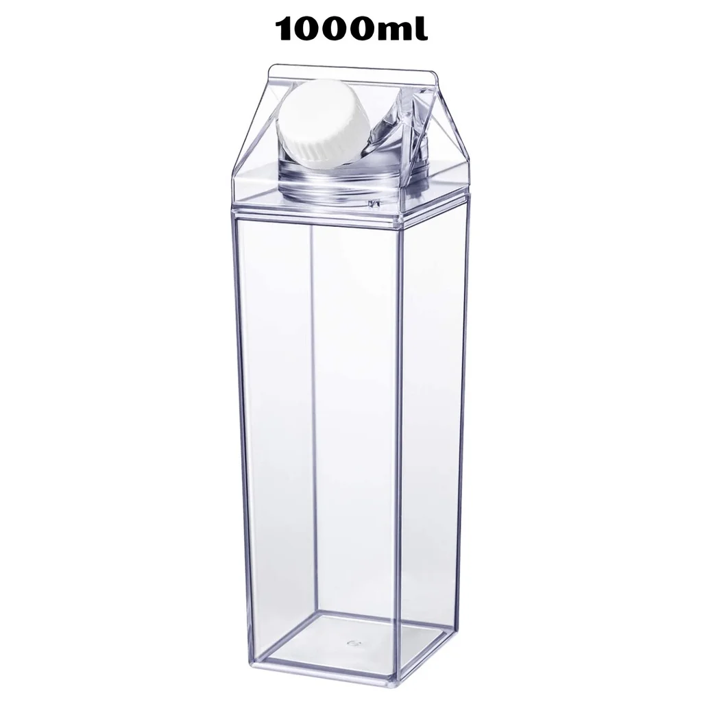 Transparent Acrylic Bottle In Box Shape Portable Milk Refrigerator Milk Juice 500ml/1000ml-IMMEDIATE SHIPPING TO ALL BRAZIL