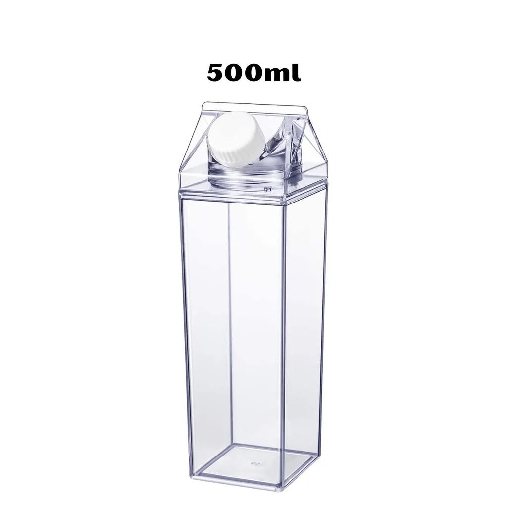 Garrafa De Acrílico Transparente Em Formato Caixa Leite Portátil Geladeira Leite Suco 500ml/ - ENVIO IMEDIATO PARA TODO BRASIL